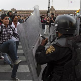 El grupo de al menos 60 anarquistas atacó alrededor de las 18:00 horas con piedras y palos a personal del Agrupamiento de Granaderos de la Secretaría de Seguridad Pública del Distrito Federal en calles del Centro Histórico.