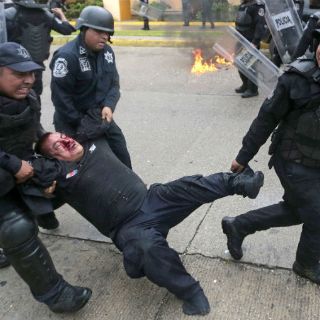Los manifestantes portan palos, tubos y algunos también los machetes que se suelen lucir en manifestaciones campesinas. En la refriega también lograron arrebatar algunos escudos a los policías federales.