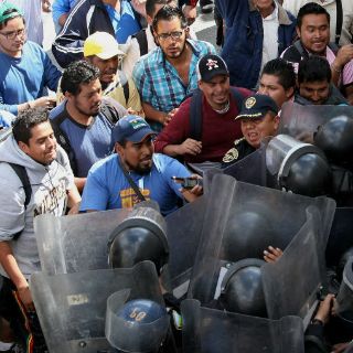Según el reporte de la dependencia, los manifestantes fueron replegados por los policías, pero los inconformes les lanzaron piedras y otros artefactos.