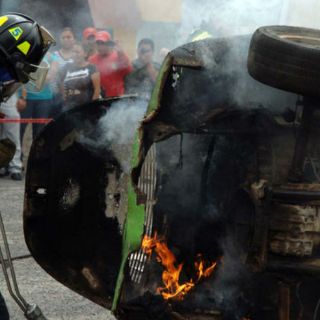 En la gasolinera que se ubica en Salamanca-Valle de Santiago, por el libramiento, varios hombres con armas de fuego descendieron de una camioneta, desalojaron a las personas e incendiaron un vehículo con bombas molotov.