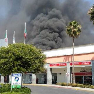 El siniestro comenzó alrededor de las 12:30 horas y el fuego consumió varios locales del centro comercial.