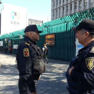 Las calles Luis Donaldo Colosio y Ferrocarril son custodiadas por policías de la capital del país, luego de que el Revolucionario Institucional pidiera apoyo al gobierno de Miguel Ángel Mancera.