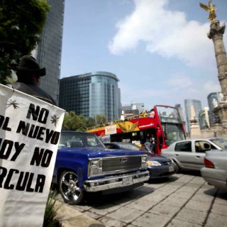 La manifestación, que inició esta mañana en el Ángel a la Independencia y concluyó con un mitin en el Hemiciclo a Juárez, fue en protesta por los cambios al "Hoy no circula", que, dijeron, perjudica a las personas que tienen menos recursos al no poder adquirir un auto de modelo reciente.