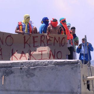 Las protestas iniciaron después de las 13 horas, cuando los internos quemaron colchones y otros objetos, mientras algunos reos subieron a las azoteas de los ambulatorios para mostrar cartulinas y lonas con leyendas contra un supuesto "comandante Kakino".