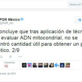 PGR) anunció a través de su cuenta de Twitter que será necesario un estudio diferente para intentar identificar los restos que, presuntamente, pertenecen a los 43 normalistas desaparecidos el pasado septiembre de 2014: