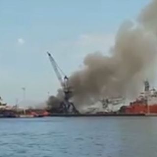 El fuego se registró este sábado una una nave que era desmantelada en Talleres Navales del Golfo