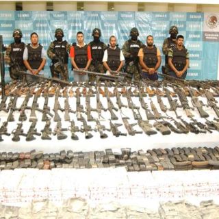 La Secretaría de Marina informó que el arsenal estaba compuesto por 80 armas largas, 20 cortas, tres tubos lanzagranadas, 50 mil 150 cartuchos, 880 cargadores, tres kilos de explosivo "EMULGEL", cuatro granadas de fragmentación y dos de 40 milímetros, además de una tonelada de fuegos pirotécnicos.