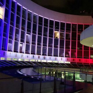 Como símbolo de solidaridad por los ataques terroristas, la sede del Senado de la República se iluminó con los colores de la bandera francesa.