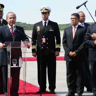 Calderón y su comitiva fueron recibidos en el aeropuerto internacional 'Simón Bolívar' de Maiquetía por el vicepresidente de Venezuela, Elías Jaua.