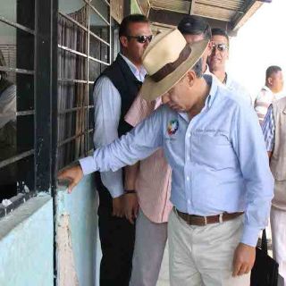 Al acudir a esta comunidad afectada por los sismos del 20 de marzo, el mandatario escuchó reclamos de la gente por la falta de clases.