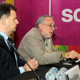 Javier Sicilia en rueda de prensa en la Feria Internacional del Libro de Guadalajara.