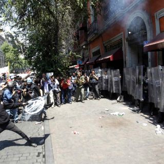 Otro grupo de manifestantes apedreó el edificio de Correos en el Eje Central y a los granaderos que hacían valla para resguardar el inmueble, lo que provocó que algunos ventanales se rompieran.