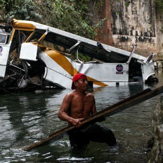 “Y al pasar por un tope, (el chofer) perdió el control de la unidad y rompió el muro de contención, lo que ocasionó que el autobús cayera al barranco”, expuso.