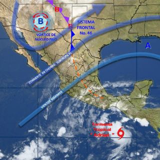 El fenómeno, denominado ''Adrián'', se ubica a 740 kilómetros al sur-sureste de Oaxaca