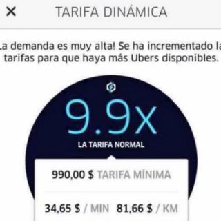 Debido a la demanda, la plataforma activa la tarifa dinámica para cobrar hasta nueve veces más por el servicio
