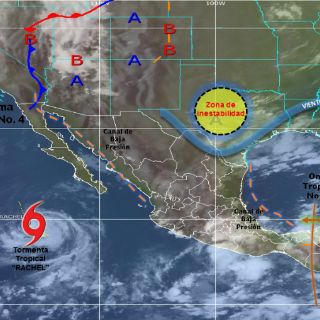 ''Rachel''se mantendrá retirada del país y al medio día podría ubicarse a 720 kilómetros al sur-suroeste de Cabo San Lázaro, Baja California Sur, con vientos de 100 kilómetros por hora y rachas de hasta 120 y mantendrá el flujo de aire húmedo con potencial de lluvias y oleaje moderado en Baja California Sur.