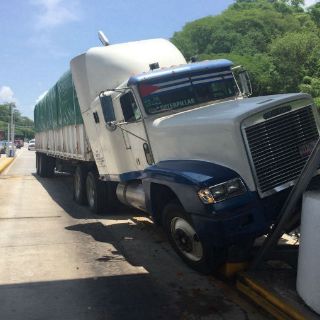 Dijo que el tráiler se impacto en la caseta número 5 y afortunadamente la barra de contención ayudó a parar la velocidad del camión.