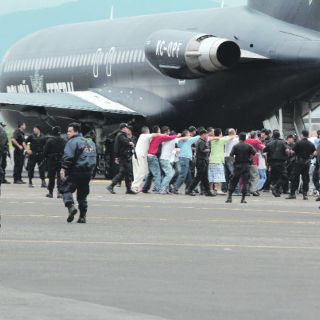 MORELIA, MICHOACÁN (22/AGO/2012).- La Policía Federal trasladó a 210 internos que purgaban penas del fuero federal en tres centros de Readaptación Social de Michoacán a diferentes centros penitenciarios del país. Los reos se encontraban internos en los penales ‘’David Franco Rodríguez’’ y ‘’Francisco J. Mujica’’ de Morelia, así como en el de Uruapan. El traslado se llevó a cabo en el Aeropuerto Internacional de Morelia.