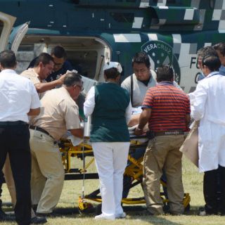 Armando Arrieta arribó a esta ciudad a bordo de un helicóptero de la Fuerza Civil, el cual aterrizó en los campos deportivos del Instituto Tecnológico de Veracruz, donde ya lo esperaba una ambulancia del IMSS cuyos operadores trasladaron al periodista al hospital de la avenida Cuauhtémoc.