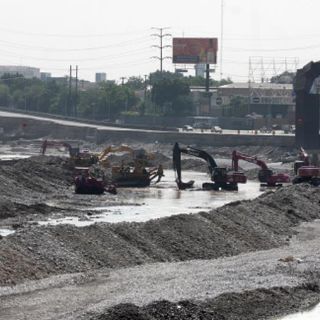 MONTERREY, NUEVO LEÓN (13/JUL/2010).- Con el cauce del Río Santa Catarina casi sin agua, maquinaria pesada quita la tierra y el escombro, para comenzar con la reconstrucción de las avenidas Morones Prieto y Constitución, que resultaron dañadas por el paso del huracán “Alex” en Monterrey, Nuevo León.