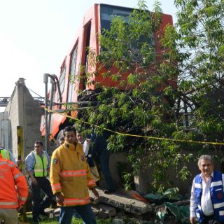 El convoy derribó una barda y quedó "volando" junto a unas casas aledañas al lugar, ha donde ha arribado el director del Metro, Joel Ortega.
