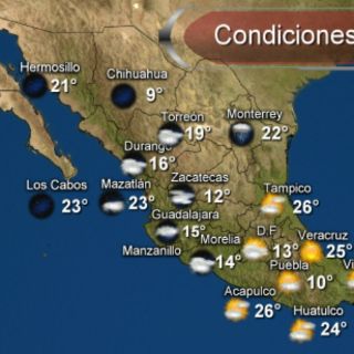Durante las últimas 24 horas la temperatura máxima registrada en el país, ocurrió en Valladolid, Yucatán, con 37.2 grados centígrados y la mínima se sintió en Toluca, Estado de México con 5.3 grados centígrados.
