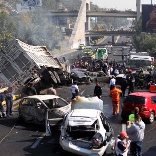 CIUDAD DE MÉXICO (08/NOV/2011).- El director de Protección Civil del Distrito Federal, Miguel Moreno Brizuela, informó de la muerte de una persona en el choque múltiple que se registró a las 9:00 horas de hoy en la autopista México-Toluca, donde se vieron involucrados 15 vehículos, ocho de los cuales quedaron calcinados, así como tres heridos que fueron hospitalizados y 12 personas atendidas en el lugar con crisis nerviosa.