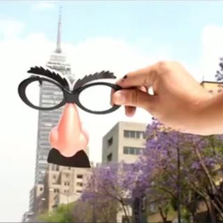 En las imágenes el elemento principal son unos lentes con nariz y bigote, que colocan a un sin número de mexicanos por distintas partes de la ciudad bailando