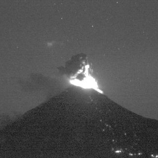 De acuerdo con el sistema de monitoreo del coloso, durante la noche se observó ligera incandescencia sobre el cráter; y, adicionalmente, dos explosiones, así como 12 minutos de tremor armónico y un sismo vulcano-tectónico de Mc 1.7, ocurrido a las 2:10 horas.