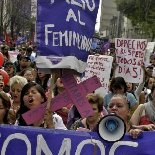 La marcha que se lleva a cabo anualmente con motivo del Día Internacional de la Mujer está integrada por grupos femenistas, organizaciones civiles y ciudadanos, quienes gritan consignas a apoyo a Rubí Rubio.