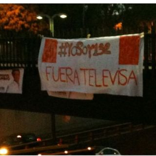 CIUDAD DE MÉXICO (02/JUN/2012).- Integrantes del movimiento #YoSoy132 y del Colectivo Ariadna México Ciudadano se manifestaron la noche de este viernes frente a las instalaciones de Televisa Chapultepec, sin provocar afectaciones viales.