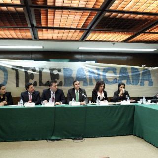 Los manifestantes colocaron una manta atrás de la mesa directiva de la comisión que rezaba "No Telebancada", mientras otros jóvenes afuera intentaron ingresar pero la seguridad les impidió el paso.