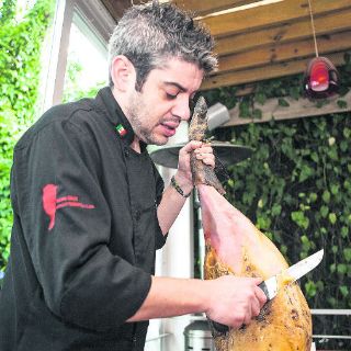 “A mí me gusta comerlo solo y acompañado de un vino al inicio de la comida, porque es tan especial que no tiene sentido comerlo después de haber probado un pescado u otro platillo, pues te va a cambiar el sabor. Además, es tan complicado poder hacer 700 mil piernas perfectas, porque con pequeños detalles se pueden estropear, que a la hora del disfrute lo mejor es simplificarlo al máximo”, comenta el maestro cortador de jamón Héctor Ibáñez Llarena, director de la Escuela de Corte Ibérico y distribuidor en México de los jamones Señorío de Olivenza, con la D.O. Dehesa de Extremadura.