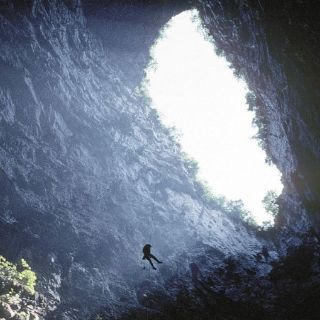 Para el rappel de 200 metros de profundidad en esta cueva vertical, se requiere de muy buena condición física y experiencia comprobable.