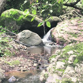 El rodar de agua se dejó escuchar, el sendero nos acercó al arroyo que corría entre fresnos y medianas piedras, haciendo preciosos saltitos de tramo en tramo