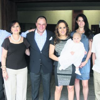 GUADALAJARA, JALISCO (10/OCT/2013).- Ana Cristina Alarcón de Villeda y Roberto Villeda bautizaron a su primogénito, Marcelo Villeda Alarcón, en el templo de San Enrique Emperador. Los padrinos fueron Adalberto Nava y Bernie Galland.