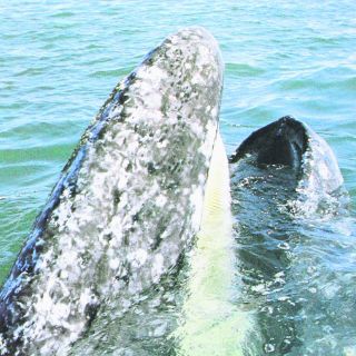 La Ballena Gris; que mide unos 15 metros y pesa unas 30 toneladas. El color de su piel, las verrugas en su cabeza y las aletas pectorales no muy grandes, son sus características. Algunos le llaman “la ballena del diablo” por a la fiereza con que se defiende cuando es atacada.
