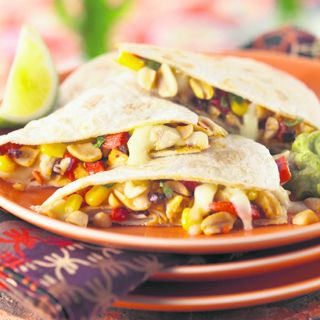 Puedes mezclar los cacachuates con pollo y queso, freídos en una sartén con pimiento rojo, elote y cilantro y servido a manera de quesadillas. El resultado será delicioso.