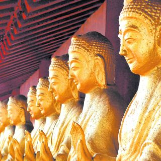 Todos son budas con el mismo cuerpo, el mismo rostro, la misma posición de las manos; la derecha hacía arriba y la izquierda hacia abajo, con la palma extendida. Son 480 Amitabha que serpentean el camino hacia el majestuoso buda de 40 metros. No es metáfora, es realidad, ese camino es totalmente dorado y representa la luz que desprendió Buda cuando alcanzó la plenitud espiritual. Así que la historia, impresa en el mapa de ubicación que me dieron en la recepción, no miente.