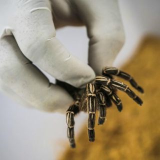 +Tarántula: Estos arácnidos son extremadamente populares, pues algunas especies son muy fáciles de cuidar; al punto de ser llamadas "mascotas para principiantes". Como les cuesta mucho trabajo adaptarse a nuevos ambientes, se lastiman fácilmente y pueden volverse violentas si se les toca incorrectamente, la mejor estrategia es dejarlas hacer su vida tranquilamente. Aunque la gran mayoría de las personas prefiere comprar especímenes adultos, una tarántula bebé se adaptará más fácilmente a su nuevo hábitat.
