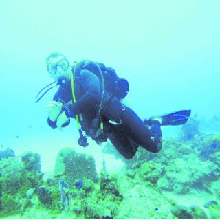 En una de las buceadas con duración de poco más de una hora, con una ligera corriente a favor ya previamente planeada, nos pusimos a “volar”; es decir, suspendidos en el agua sólo con la posición horizontal del buzo con los brazos entrelazados sin hacer nada, sólo dejándonos llevar. No es necesario usar las aletas, porque la misma corriente te va arrastrando. Vas viendo pasar las piedras forradas de corales, esponjas de colores, grandes abanicos de mar y bellos y coloridos cardúmenes de peces.