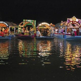 Se trata de un recorrido nocturno de alrededor de tres horas por un canal de dos kilómetros y medio, en trajineras modernas con cupo para 20 personas, cuyos nombres son los 32 estados de la República Mexicana.