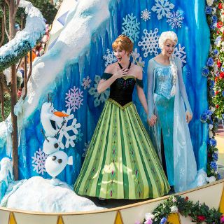 • Frozen llega a Disney y comienza con la "Bienvenida real de Anna y Elsa", todos los días a las 11:00 horas, ellas recorren el Hollywood Boulevard en trineo acompañadas por "Kristoff", patinadores, esquiadores y cortadores de hielo.
