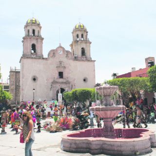 Durante la fiesta de la Virgen de la Asunción, la plaza se convierte desde temprano en un centro de peregrinaje, fiesta y baile. Grupos de peregrinos y devotos hacen fila para entrar a la parroquia de nuestra señora, mientras danzarines, muchos vestidos a la usanza prehispánica con penachos y plumas bailan en honor a María. ¿De dónde vienen? “Del Bajío, Celaya, Irapuato, León, el Estado de Hidalgo y de México”, contestan en coro, sudorosos y felices de “bailarle a virgencita”.