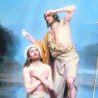 Cristo, que no tiene pecado, se humilla y baja al Jordan para ser bautizado por Juan. Él, que no tiene pecado da a las aguas la virtud purificadora de su amor y de su espíritu para el nuevo bautismo. Todo hombre será invitado, en unión viva con Cristo, al bautismo en el espíritu. “El que crea y se bautice se salvará”.