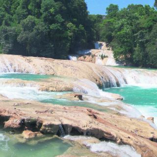 Desde el punto más alto de este afluente hasta el lugar más bajo, el turista puede apreciar el tono azul-turquesa del agua, la abundante vegetación y sentir la brisa provocada por la intensidad con la que fluye sobre grandes piedras, poco antes de se precipite al Río Tulijá.