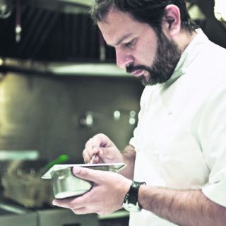 Olvera tiene libros de nombre refinado pero no tiene aspecto de intelectual de la cocina. Tiene barba. Tiene un poco de barriga. Tiene una sonrisa joven. Tiene aspecto de ser un tipo de esos que ya está cerca de los 40 y que es aficionado a hacerle comidas riquísimas a sus amigos en su casa. Con la diferencia de que no es un aficionado sino un maestro de las comidas riquísimas.