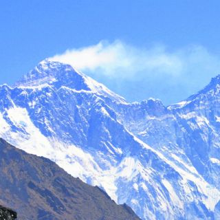 Desde ahí –habiendo buen tiempo– se pueden divisar algunos de los más grandes picos: El enorme Lhotse de ocho mil 414 metros. El bellísimo Ama Dablan (seis mil 856). El imponente Thamseku (seis mil 608); y por primera vez, allá en la lejanía, el Everest ¡la cumbre más alta del mundo! con sus ocho mil 848 metros y su pared triangular con sus características rayas inclinadas. Si se tiene la paciencia de un monje tibetano; un enorme lente con tripié; y una taza de café caliente con un pastelito entre las manos, quizá se pueda hacer una foto como la que, con todos estos atributos, se tuvo la suerte de lograr.