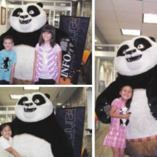 Po estuvo de visita en las instalaciones de INFOlectura donde se tomó la foto con chicos y grandes que quedaron sorprendidos con su habilidad en las artes marciales en la película de Dreamworks: Kung-Fu Panda 2.