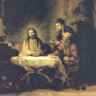 El Rembrandt, es impresionante en la expresividad de los rostros y la atracción de la luminosidad con la que rodea la persona de Jesús, con uno de los discípulos de espaldas que es al que se ha denominado como el anónimo, y Cleofás estupefacto, porque le ha reconocido. Y hoy como siempre decimos, te conocimos Señor al partir el pan.